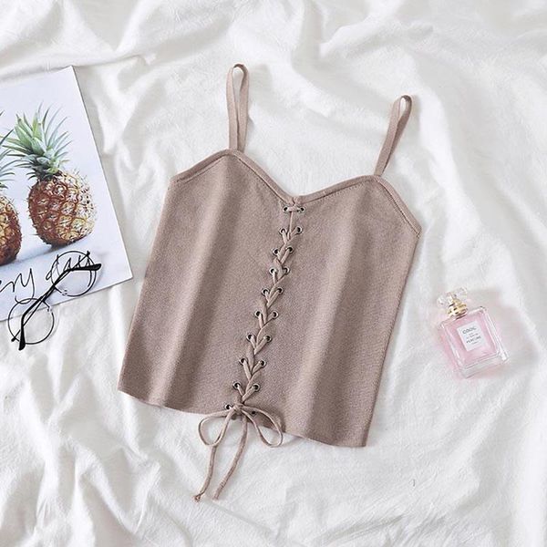 women's tanks & camis abrini 2021 summer drawstring crop female v-neck vest white stretchy tank femme club knitting skinny