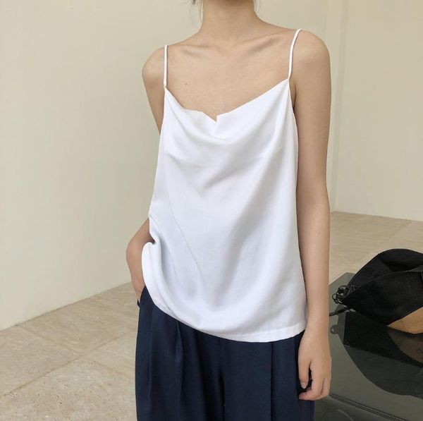 women's tanks & camis haute couture tencel female summer style silky shiny camisoles basic white tee resort high end clothing