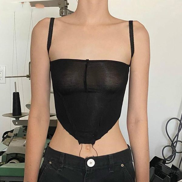women's tanks & camis sleeveless crop backless spahetti strap summer camisole casual assymmetric women streetwear s259, White