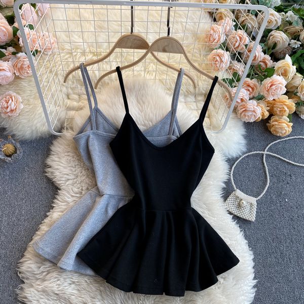 women's tanks camis street style spaghetti strap slim waist casual chic ruffled peplum comfortable small 230306, White