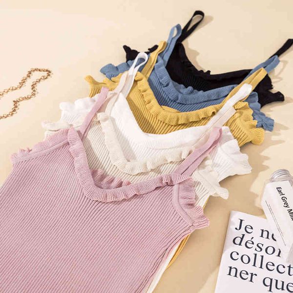 women's tanks & camis verano mujer crop women camisole summer tank ruched elasticity casual knitted striped ladies camiseta haut femme, White