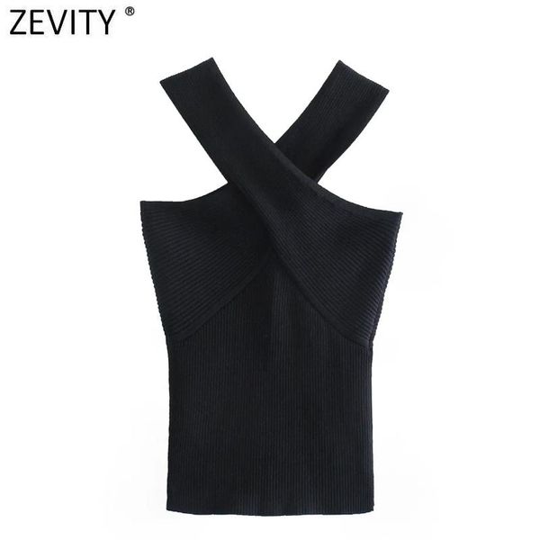 women's tanks & camis zevity women chic cross strap black knitting tank high street ladies summer slim crop sw835, White