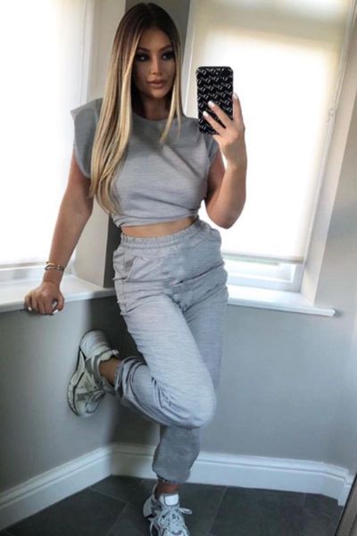women's tracksuits 2021 casual outfits 2-piece summer fashion sleeveless solid color t-shirt + pants female clothes suit streetwear, Gray