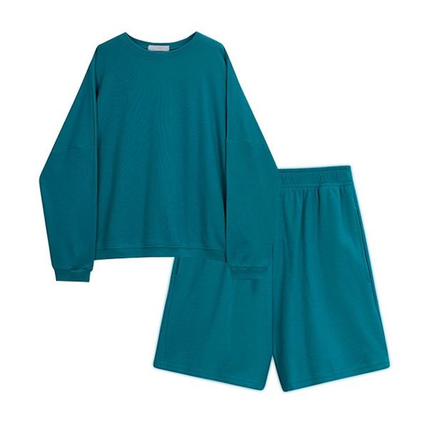 women's tracksuits autumn fashion sport sets 2021 women long sleeve o neck hoodies and high waist shorts two piece set casual home conj, Gray
