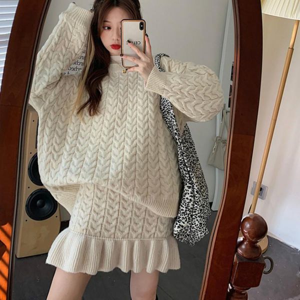 women's tracksuits autumn winter women sweater two piece knitted skirt sets loose tracksuit spring fashion pullover +short skirts suit, Gray