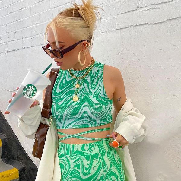 women's tracksuits green bandage casual two piece sets 2021 summer sleeveless paisley tank and high waist shorts set matching streetwea, Gray