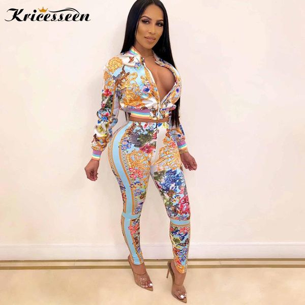 women's tracksuits kricesseen casual print two pieces pant set women long sleeve zipper and pants suits 2 piece outfits matching sets, Gray