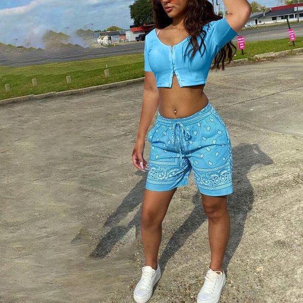 women's tracksuits summer outfits for women 2021 bulk items wholesale lots solid zipper crop printed short suits,two piece set vacation, Gray