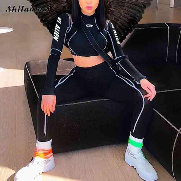 women's tracksuits two piece set women tracksuit casual fitness fashion slim high waist full sleeve length o-neck letter outfits, Gray