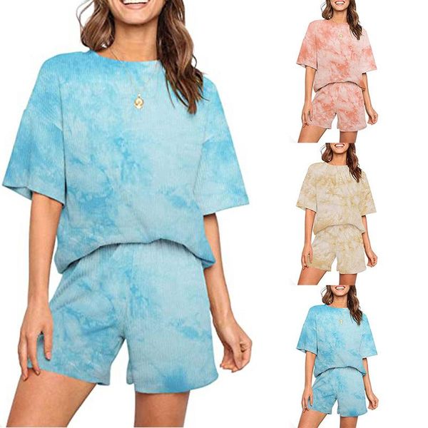 women's tracksuits wanyucl 2021 summer products fashion home sports tie-dye round neck ladies suit jacket + shorts two-piece women, Gray