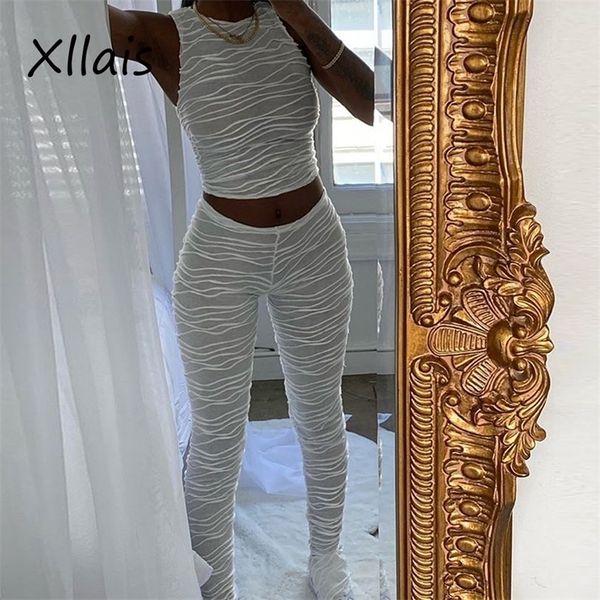 women's tracksuits xllais white fashion cute sleeveless tank high wasit pencil pants two piece sets women o-neck vests slim trousers 2, Gray