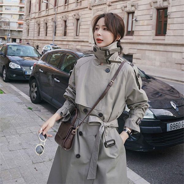 women's trench coats 2021 chic windbreaker spring autumn korean loose long overcoat fashion plus size british coat with belt, Tan;black