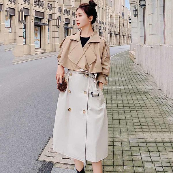 women's trench coats 2021 khaki color contrast coat women laple double breasted long sleeve windbreaker female tide, Tan;black