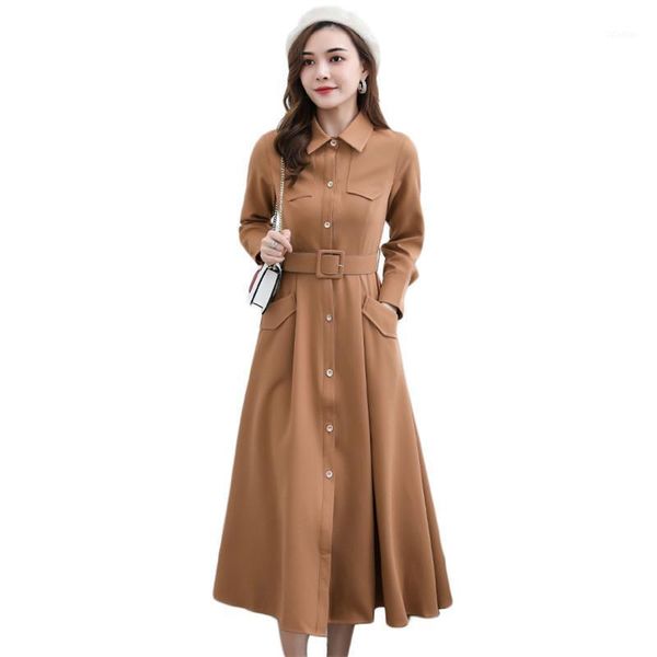 women's trench coats coat women khaki plus size long windbreaker 2021 spring autumn slim sleeve single-breasted with belt ld1299, Tan;black