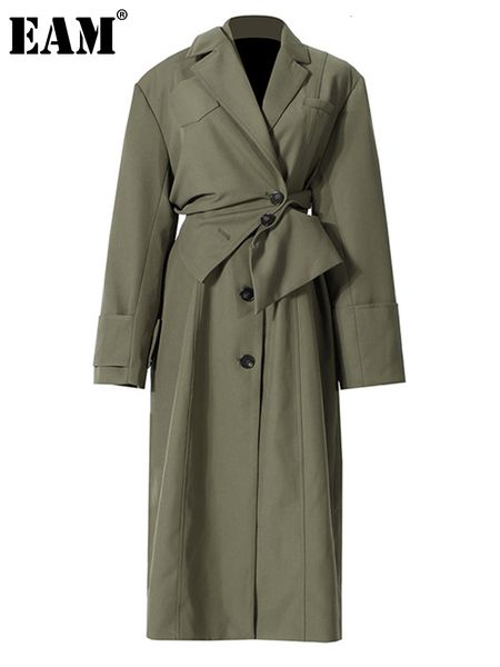 women's trench coats eam women green irregular big size lapel long sleeve loose fit windbreaker fashion spring autumn 2023 1de2795 2302, Tan;black