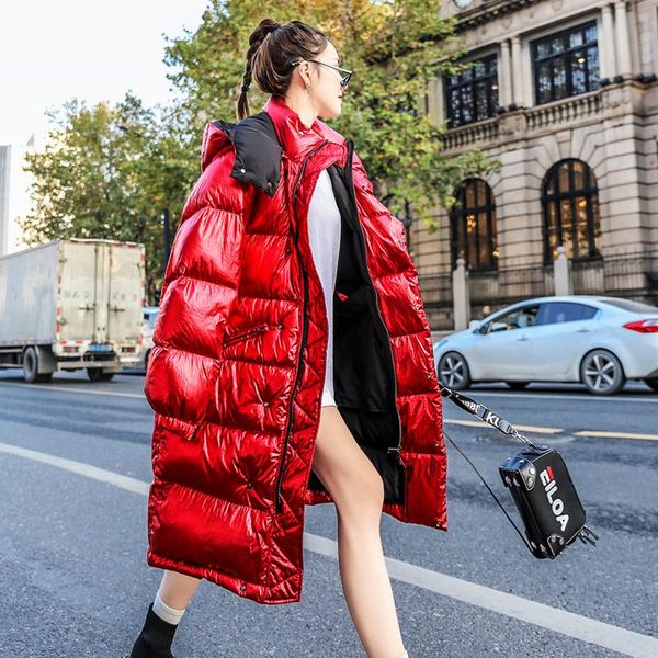 women's trench coats winter red bright down parkas women long hooded cotton jacket coat female loose warm womens, Tan;black