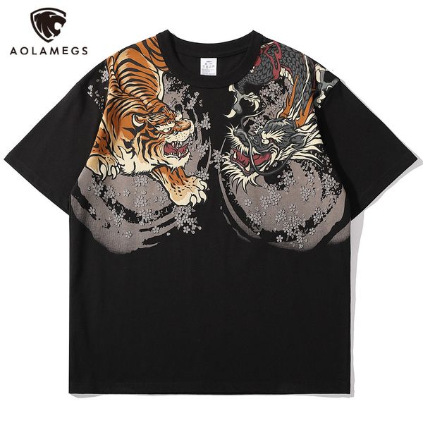 women's tshirt aolamegs oversized men tshirts tiger dragon print tshirt summer hip hop punk black tee cottons fashion streetwear 23071, White