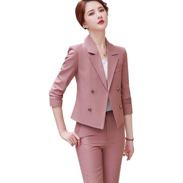 women's two piece pants arrival spring pink khaki black women ladies pant suit fashion short blazer jacket and trouser female formal 2, White