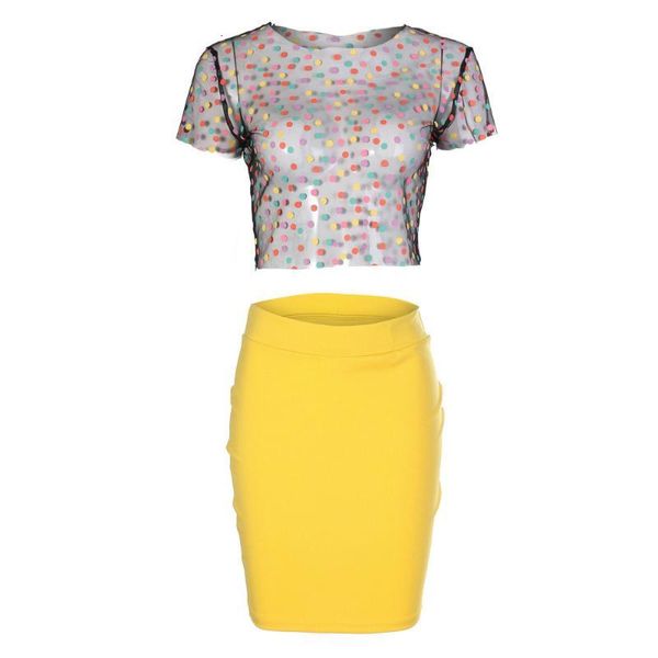 women's two piece pants womens sets summer casual 2 pieces dot print mesh t-shirt indie fork slim mini short sleeve skirt, White