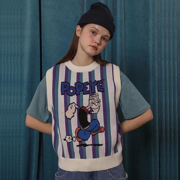 women's vests 2021 autumn winter design harajuku ladies sweater vest sleeveless pullover cartoon jacquard thick casual loose knitwear, Black;white
