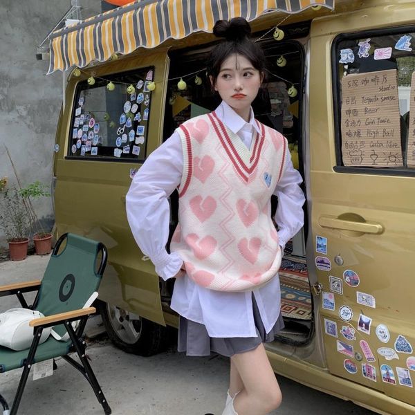 women's vests autumn sweet embroidery knitted vest women loose casual all match korean sweater elegant chic fashion pull femme, Black;white