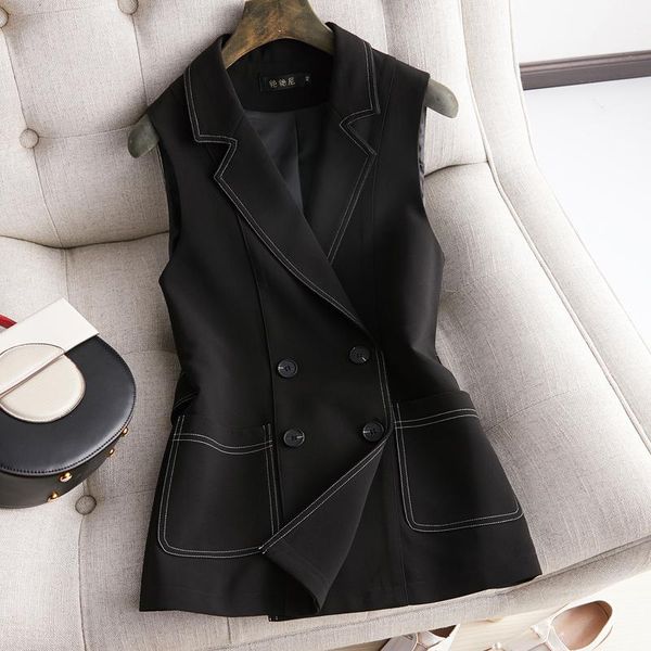 women's vests [ewq] korea chic waistcoat 2021 autumn winter slim double breasted lapel black vest coat female fashion 16e4258, Black;white
