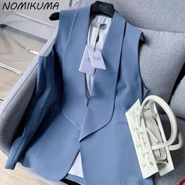 women's vests nomikuma 2021 summer causal sleeveless notched collar vest korean solid coat fashion elegant jacket female 6j907, Black;white