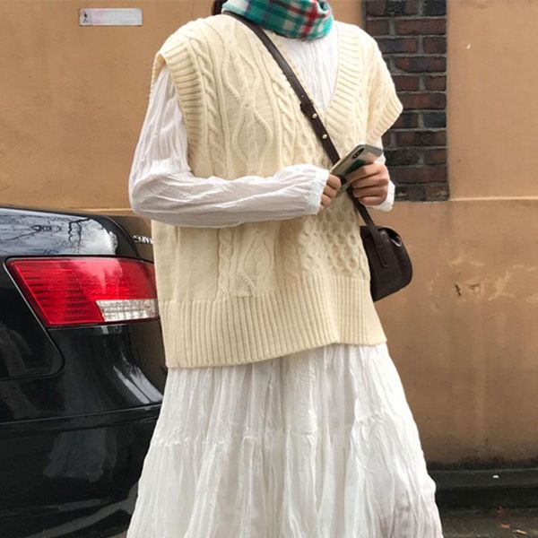 women's vests oversize knit vest chic v-neck sleeveless wool-blend waistcoat sweater women fashion outfits /, Black;white