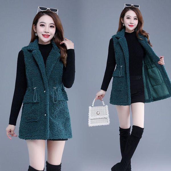 women's vests women long lambswool vest 2021 female imitation grain velvet sleeveless coat femme autumn winter jacket casual d, Black;white