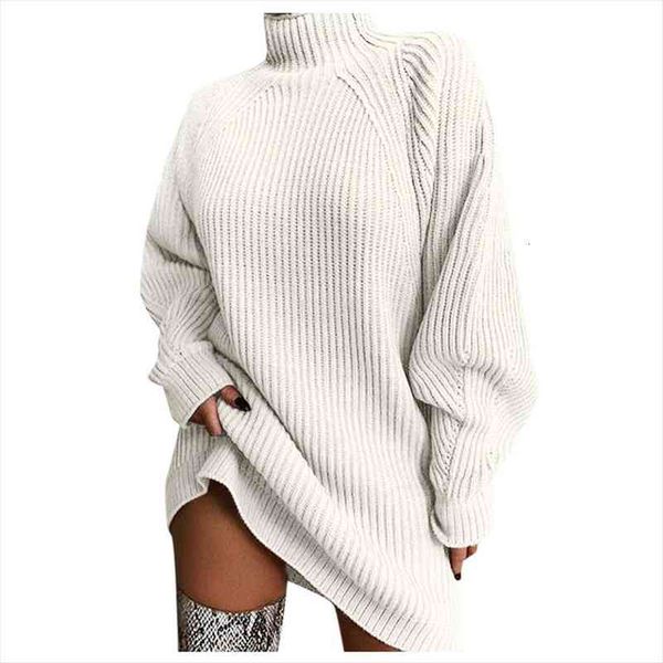 women autumn winter turtleneck sweater loose knitted dress solid plus size long pullovers bohemian top, White;black