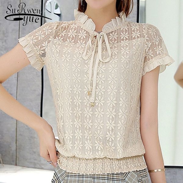 women and blouses short sleeve fashion lace blouse shirt blusas hollow lace women's clothes ladies 0058 30 y200828, White