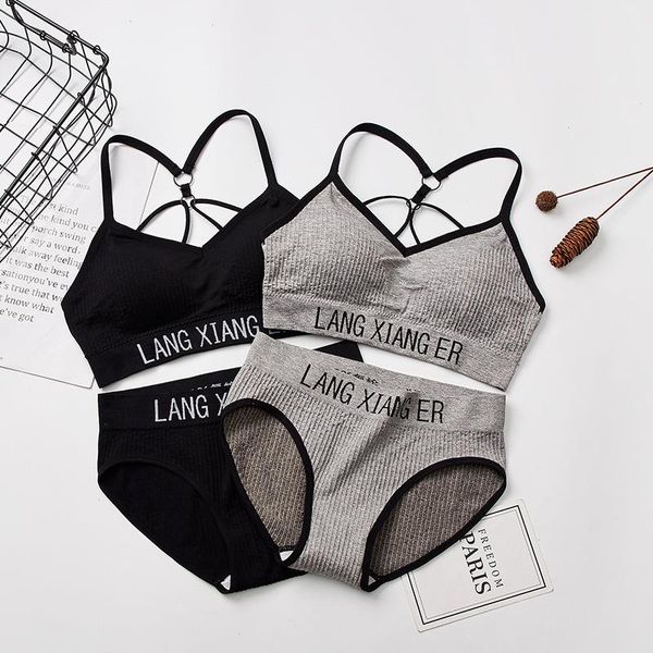 women bra set panties push up bralette female fitness seamless underwear sports lingerie brassiere tank crop, Red;black
