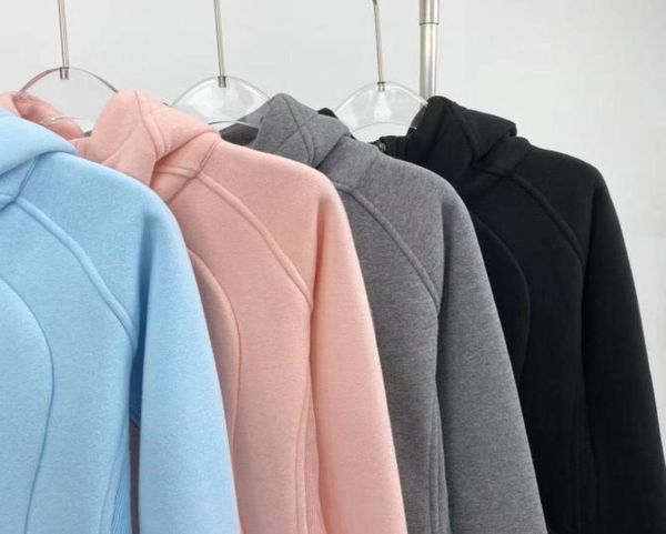 women brushed fu zip hoodie jacket sportswear yoga outfits hooded workout track running coat with pockets outdoor fleeces thumb holes9261257, Black;brown