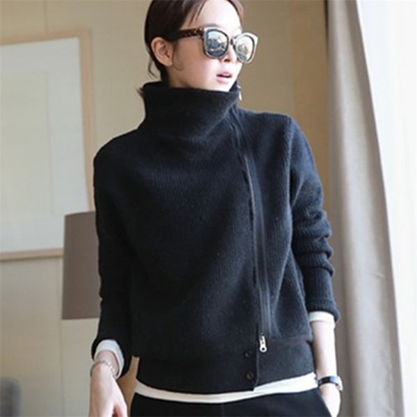 women cardigan double thickening loose turtleneck female sweater ladies solid color wool knitting cardigans 210903, White;black