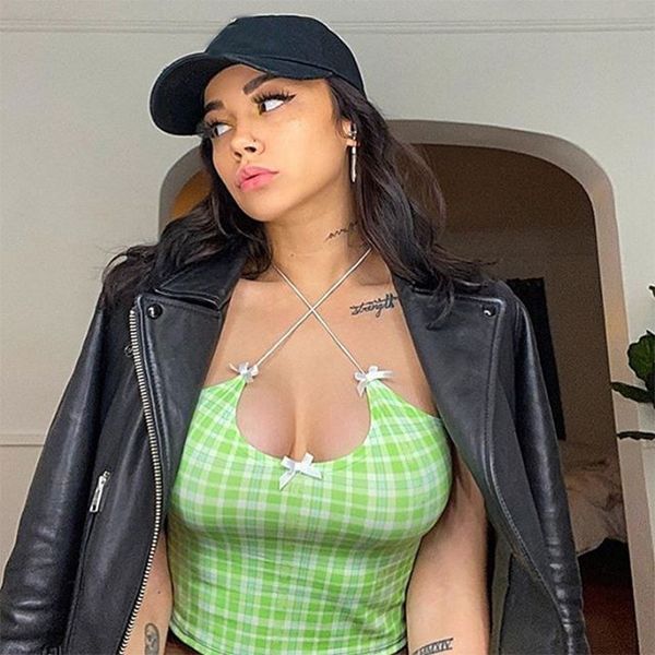 women casual fashion skinny plaid tank summer 2020 new strap sling camis female slim street wear camisole tee shirt, White