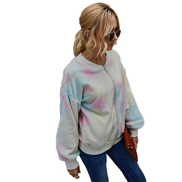 women coat 2021 tie-dye jacket autumn winter fashion casual print long sleeve outerwear zipper womens coats women's jackets, Black;brown