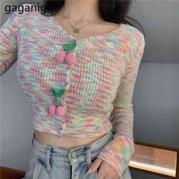 women crop cardigans girls sweet applieques flower fashion knit kardigan outwear spring 210601, White