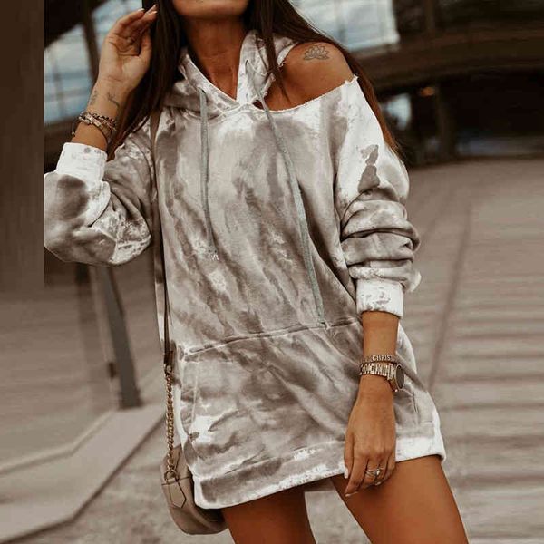 women hoodie new casual tie dye print pullover 2021 autumn cut out hooded sweatshirt ladyiesfashion drawstring a823, Black