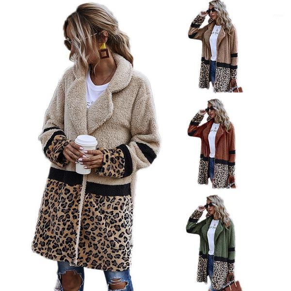 women leopard print patchwork warm thick cotton autumn winter female cardigan sweatshirt loose casual soft clothing1, Black;brown