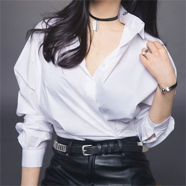 women long sleeve white shirt blouse celmia ladies casual solid elegant ol work chemise blusas feminina 210603