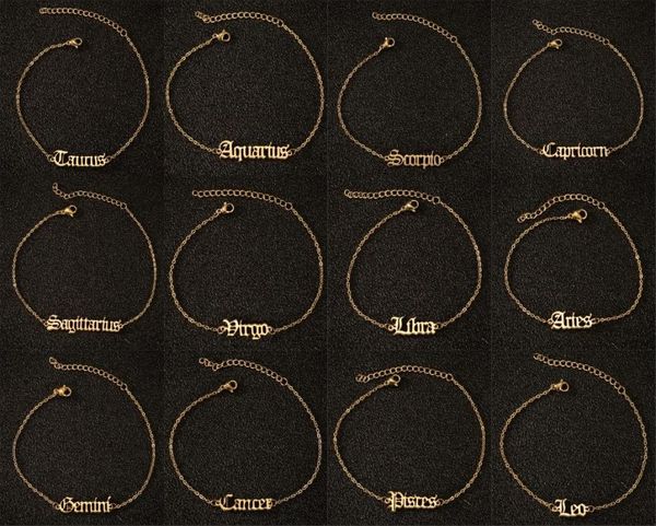 women men anklets chains 12 constellations zodiac sign letter goldsilver ankle bracelet birthday gift stainless steel foot chains9193197, Red;blue