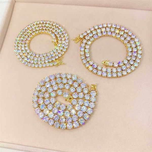 women men hip hop 5mm vvs moissanite tennis choker chain iced out jewelry set diamond tennis chain moissanite tennis necklace, Silver