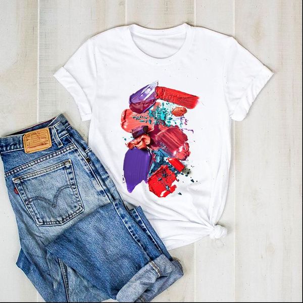 women print casual paint make up girl 3d color lady graphict ladies clothes tee female tshirt womens shirt clothing t shirt, White