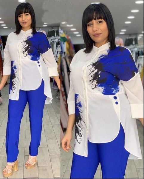 women printed tracksuits two piece suit white shirts with pants lady fashion irregular split casual suits afican autumn plus, Gray