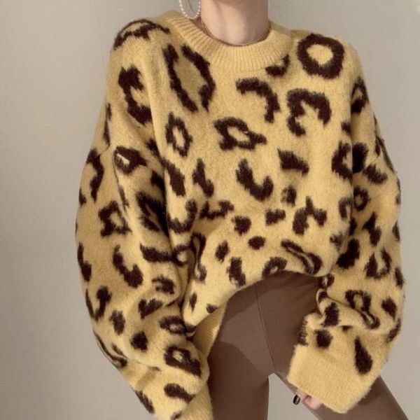 women s sweaters leopard print sweater women fall and winter y2k retro loose round neck pullover all match wool knitted long sleeves 220908, White;black