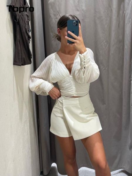 women s t shirt ladies v neck solid bow long lantern sleeve slim casual elegant tees 2023 chic party club street wear female 230823, White