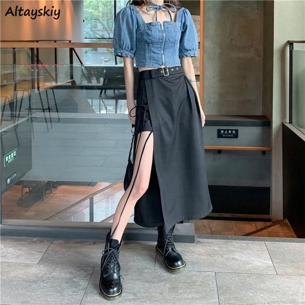 women skirts streetwear high waist side slit bow retro irregular summer elegant new fashion design a-line womens solid hot, Black;gray