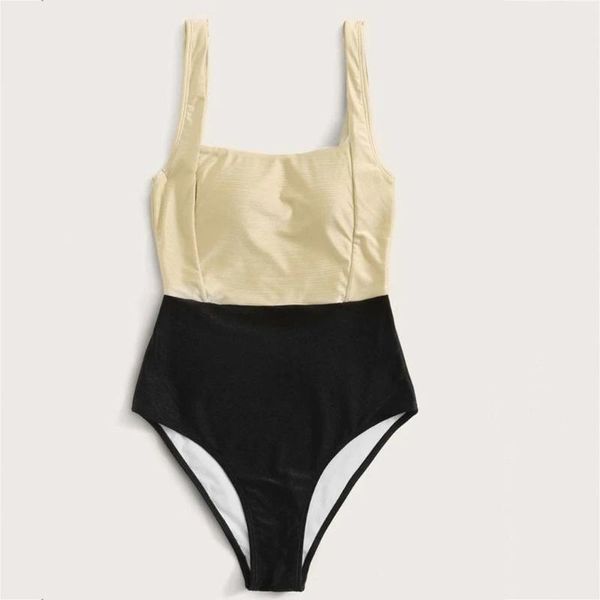 women solid color stitching swimsuit halter padded push up one piece bikini sets swimsuits beachwear swimwear
