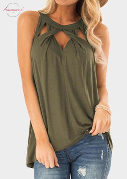 women solid halter cross twist hollow out tank female army green sleeveless vest summer loose modern shirt, White