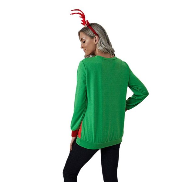 women sweatshirt christmas themed cartoon snowman santa claus reindeer doll elf print pullover long sleeve o-collar, Black